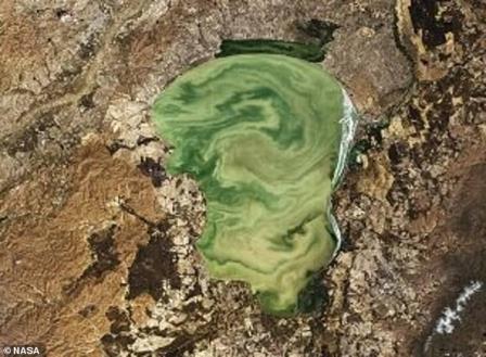 Nguyên nhân của hiện tượng này chính là sự gia tăng nhiệt độ toàn cầu đã khiến các loại tảo sinh sản với số lượng nhanh trong nước, làm nước có màu xanh và bị ô nhiễm do không có sự cân bằng môi trường. Loài tảo này nguy hiểm cho cả người lẫn cá và động vật.