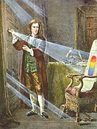 Trước Newton, người ta vẫn cho rằng ánh sáng là một thể tinh khiết, không thể phân tách (lại Aristotle!). Tuy nhiên, Newton đã chỉ ra sai lầm này, khi ông dùng lăng kính để tách ánh sáng mặt trời ra các màu khác nhau rồi chiếu lên tường.