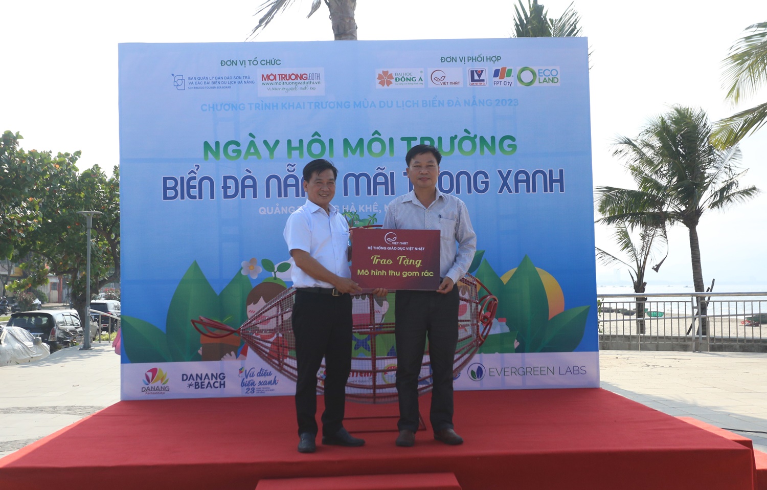 Hệ thống Giáo dục Việt Nhật trao tặng 1 mô hình “Cá Bống ăn rác” cho Ban quản lý đặt tại bãi biển Thanh Khê.