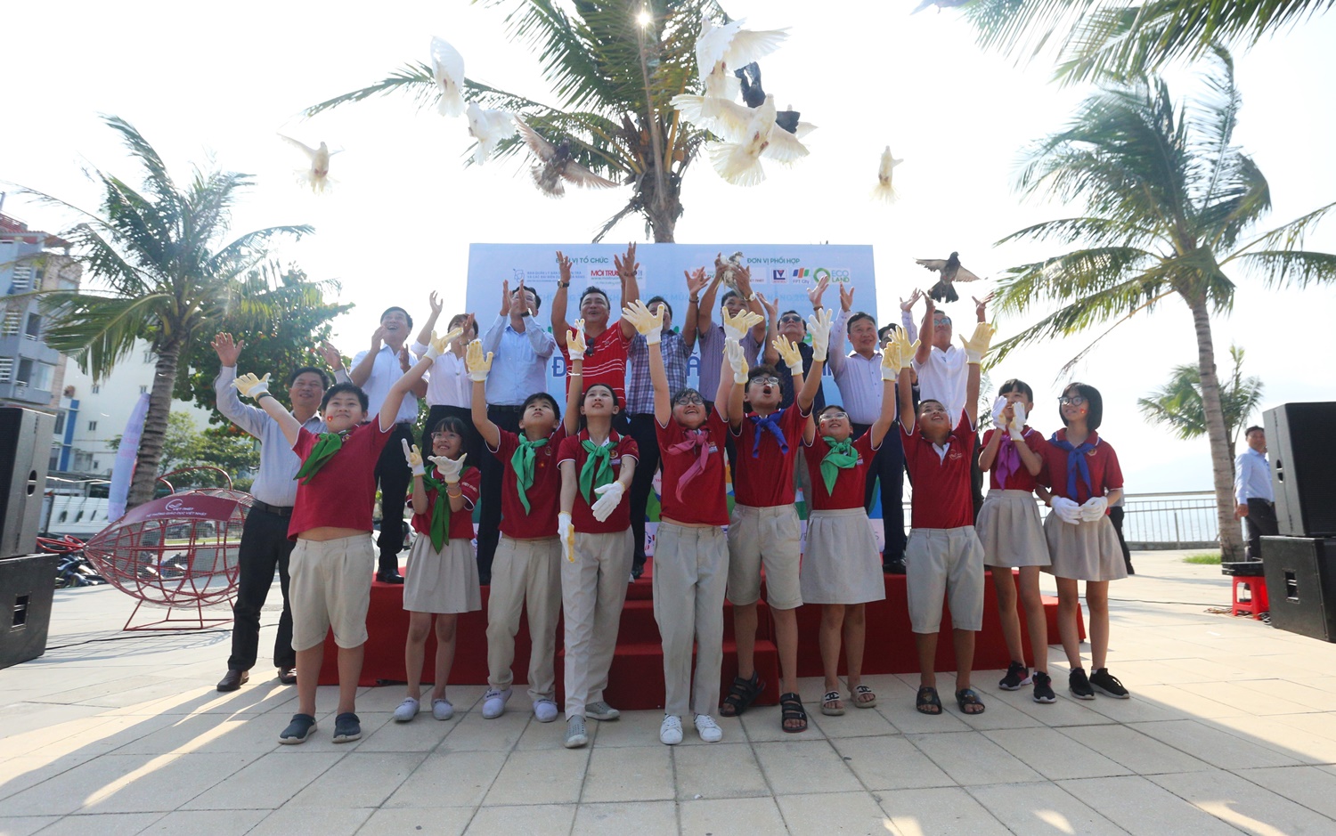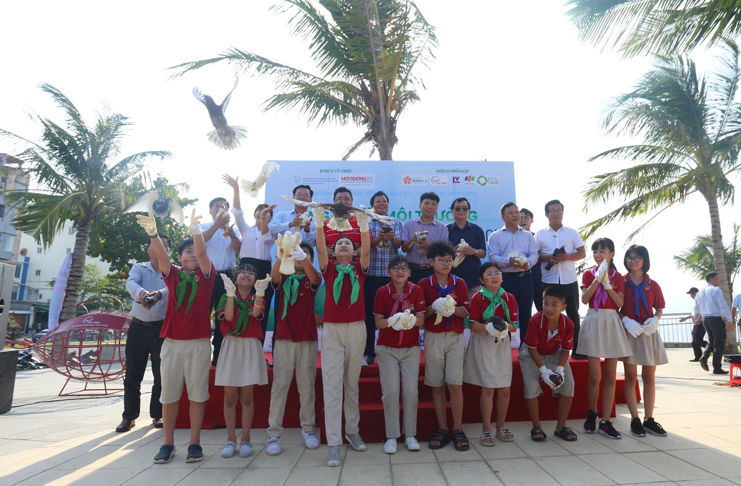 Nghi thức thả chim bồ câu phát động Lễ ra quân nhặt rác làm sạch bãi biển và chuỗi hoạt động kết nối “Biển Đà Nẵng trong lòng em”.