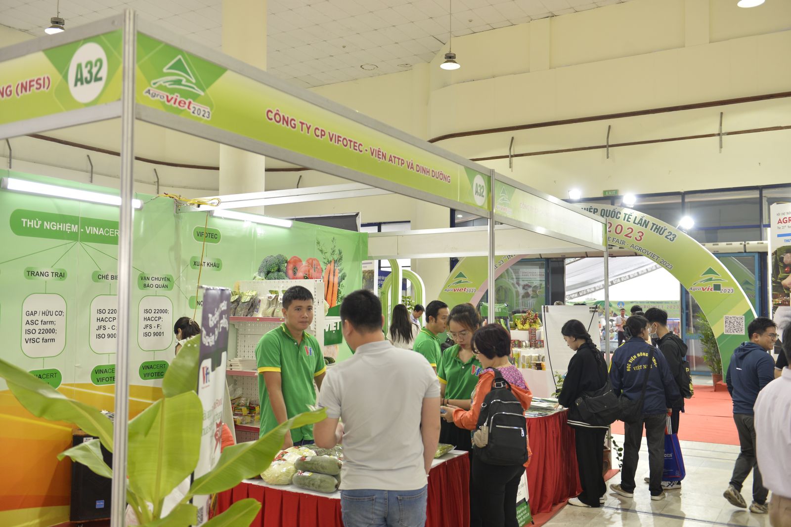 Hội chợ triển lãm Nông nghiệp Quốc tế - AgroViet diễn ra từ ngày 14/9 đến ngày 17/9/2023, trưng bày, giới thiệu nhiều mặt hàng đa dạng, phong phú với nhiều sản phẩm nông nghiệp, sản phẩm OCOP, sản phẩm chế biến có giá trị cao và là đặc sản tiêu biểu của các địa phương, điển hình như: Các loại hải sản vùng Hạ Long (Quảng Ninh) hàu, ốc móng tay, thịt lợn móng cái, rau gia vị, các loại củ quả,… được canh tác và quản lý chất lượng vệ sinh an toàn thực phẩm theo các nguyên tắc, khép kín “từ trang trại đến bàn ăn’ theo quy trình của chuỗi VfSC cùng nhiều loại rau củ quả chế biến và trái cây tươi của các địa phương trên cả nước.