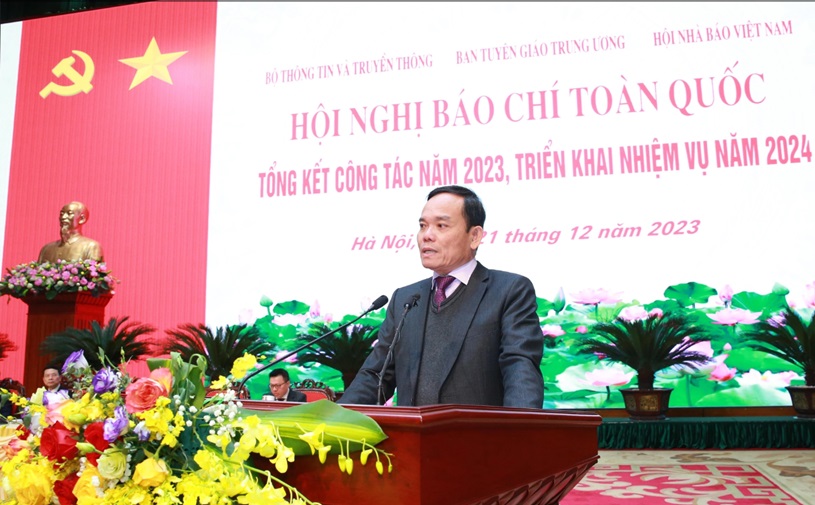 TNNN - Phó Thủ tướng yêu cầu Bộ Thông tin và Truyền thông quan tâm đến công tác tài chính cho các cơ quan báo chí để thúc đẩy, khuyến khích và đảm bảo báo chí hoạt động theo đúng tôn chỉ, mục đích. Sáng 21/12, tại Hà Nội, Ban Tuyên giáo Trung ương chủ trì, phối hợp với Bộ Thông tin và Truyền thông, Hội Nhà báo Việt Nam tổ chức Hội nghị Báo chí Toàn quốc tổng kết công tác năm 2023, triển khai nhiệm vụ năm 2024.