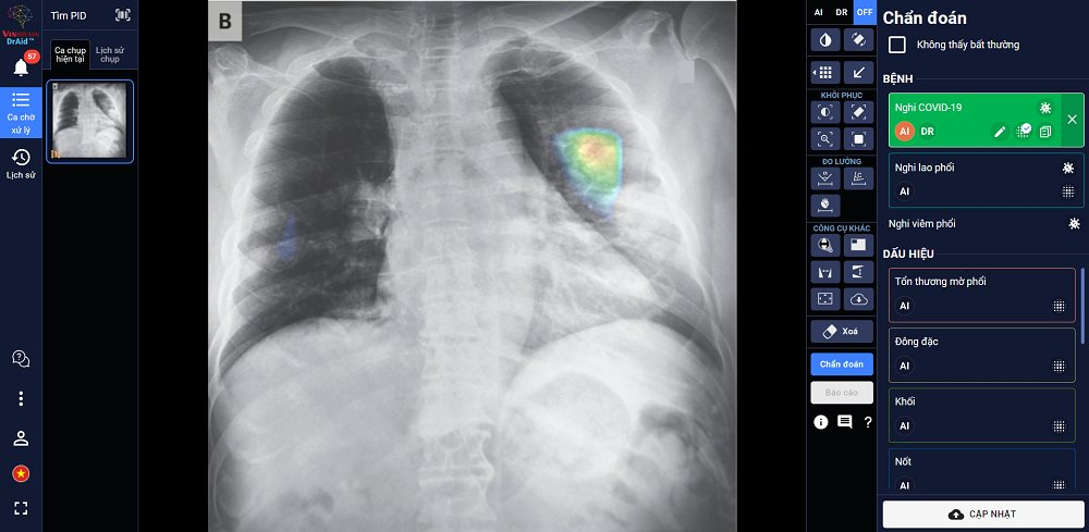 Bên cạnh đó, DrAid cung cấp các thông tin rất hữu ích cho bác sĩ khi phân tích hình ảnh phim, đặc biệt là phân tích hình ảnh X-quang ngực.