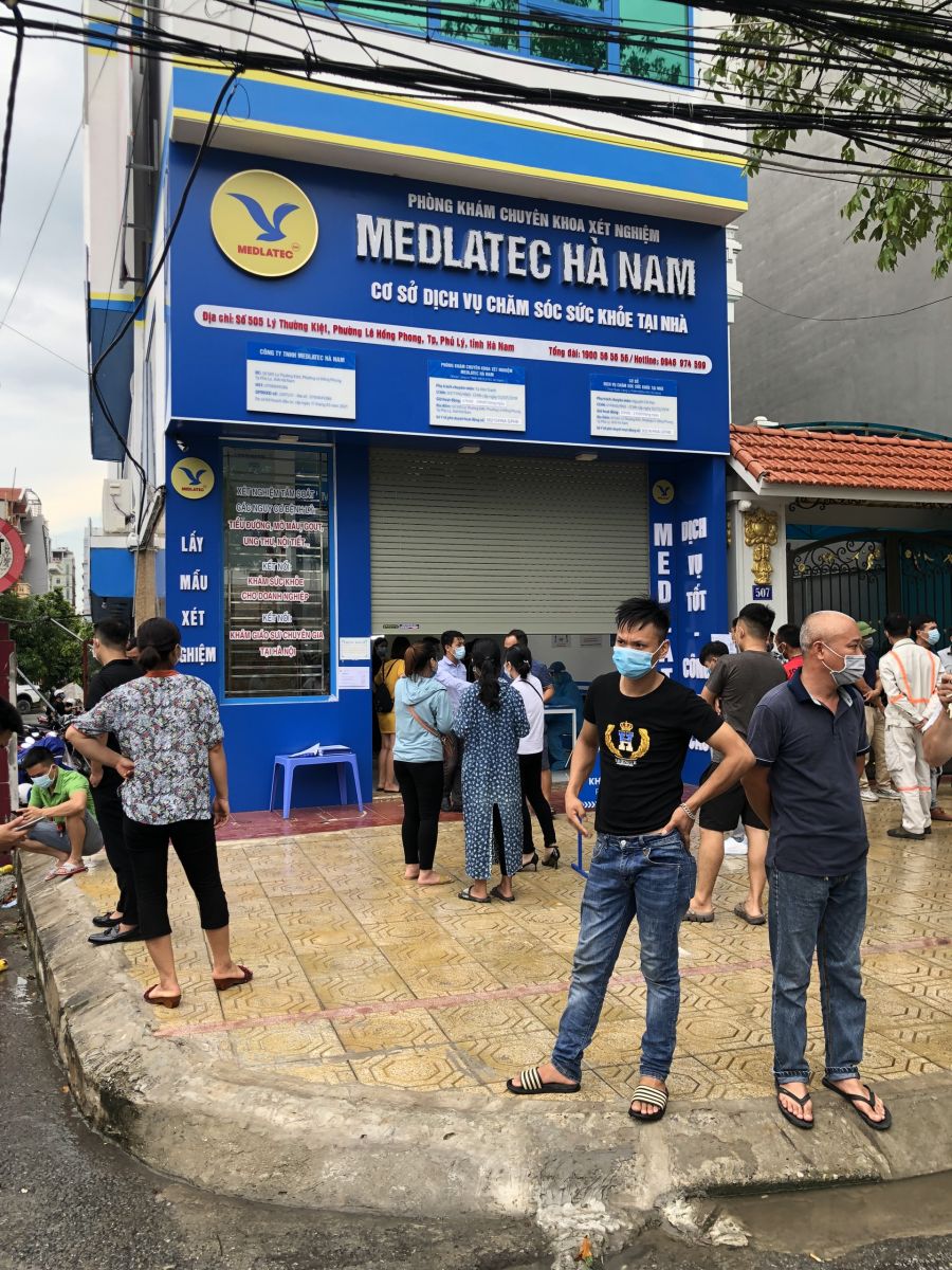 Cụ thể, sau khi nhận được phản ánh, PV đã trực tiếp ghi nhận.Theo đó, trong ngày 24/7 tại Phòng khám chuyên khoa xét nghiệm Medlatec Hà Nam có địa chỉ 505 Lý Thường Kiệt, phường Lê Hồng Phong, TP. Phủ Lý, Hà Nam tổ chức xét nghiệm Covid-19 cho hàng trăm bệnh nhân. Tuy nhiên, những bệnh nhân đến khám đã không thực hiện theo đúng thông điệp 5K của Bộ Y tế. Theo quan sát của PV vào hồi 3h chiều ngày 24/7, tại khu vực phòng khám có hàng chục bệnh nhân tập chung trước cửa không xếp hàng, không giữ khoảng cách theo quy định khiến nguy cơ lây nhiễm dịch rất cao.