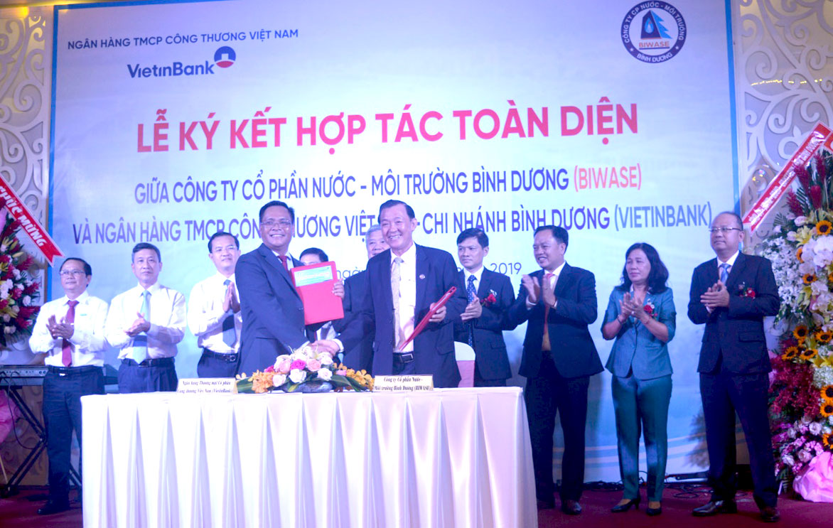 Trên cơ sở duy trì, phát triển mối quan hệ hợp tác tốt đẹp trong hơn 20 năm qua, ngày 20/8/2019, Công ty Cổ phần Nước – Môi trường Bình Dương và Ngân hàng Thương mại Cổ phần Công Thương Việt Nam đã ký kết biên bản hợp tác toàn diện.