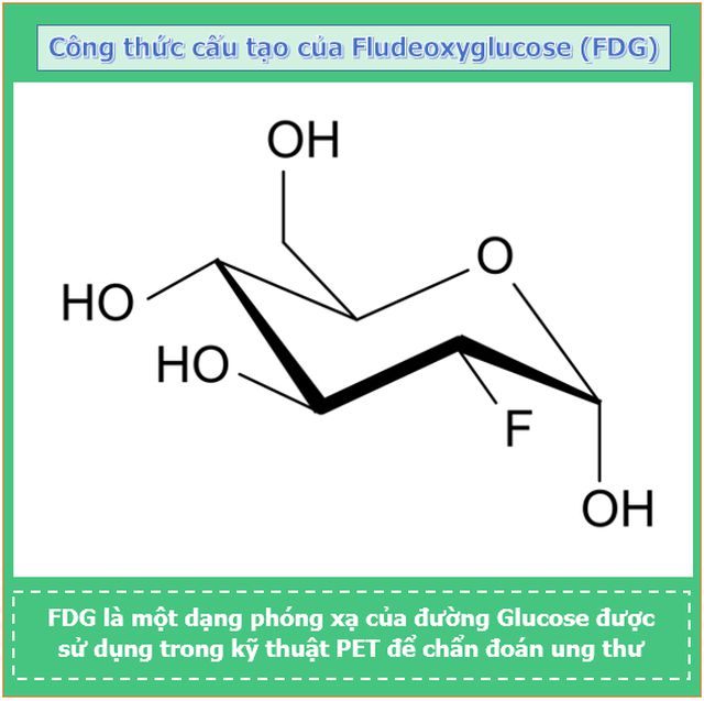Đối với bệnh ung thư, FDG (một dạng phóng xạ của đường Glucose) là một chất đánh dấu khá phổ biến, bởi căn bệnh này có thể phát hiện thông qua tốc độ tiêu hóa Glucose của tế bào.