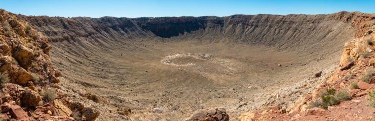 Bức ảnh chụp địa điểm thiên thạch va chạm ở hạt Coconino, Arizona. Công trình mới của Carnegie’s Sally June Tracy, các cộng sự Stefan Turneaure của trường Đại học Bang Washington và Thomas Duffy thuộc trường Đại học Princeton cho thấy một dạng silica mới bất ngờ được tạo ra trong điều kiện khắc nghiệt do va chạm gây ra.