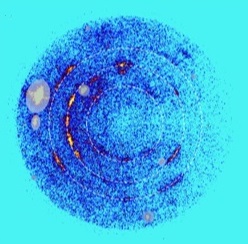 Hình ảnh nhiễu xạ tia X cho thấy dạng silica mới được tạo ra bằng cách gửi một sóng xung kích cường độ cao qua một mẫu thạch anh bằng súng khí chuyên dụng. Khi tia X phóng ra khỏi các mặt phẳng lặp lại của cấu trúc tinh thể, chúng sẽ phân tán. Điều này tạo ra một mẫu nhẫn đặc biệt. Mỗi vòng được liên kết với một mặt phẳng khác nhau và kết hợp dữ liệu này có thể cho các nhà nghiên cứu biết về kiến trúc cấp nguyên tử của vật liệu.