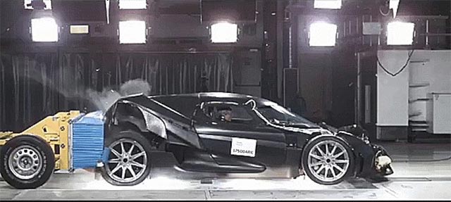 Để được cấp phép mở bán ở Hoa Kỳ, những chiếc siêu xe Koenigsegg cần phải vượt qua được một loạt các thử nghiệm va chạm, bắt đầu từ các va chạm phía trước, sau đó phía sau và cuối cùng là từ bên hông. Trên tất cả, chiếc xe thử nghiệm sẽ phải trụ vững trước một loạt các tác động phức hợp từ nhiều vị trí khác trên thân xe, mô phỏng gần như chính xác những tình huống có thể xảy ra trong điều kiện thực tế. Đối với một số nhà sản xuất ô tô bình dân, chi phí cho những thử nghiệm kiểu này thường không phải là vấn đề gì đó quá lớn.