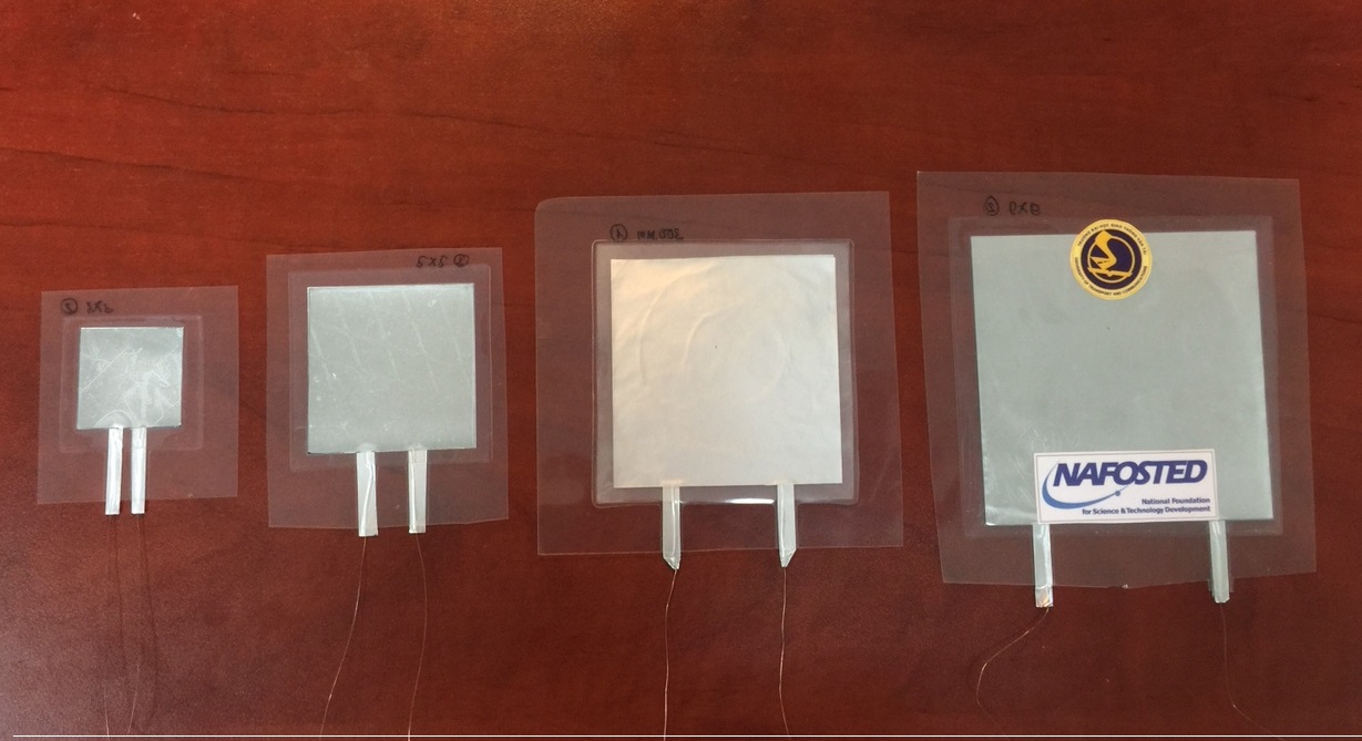 Vậy làm thế nào để chế tạo cảm biến trong điều kiện của Việt Nam? Để trả lời câu hỏi này, TS. Đào Thanh Toản và các cộng sự đã đề xuất chế tạo cảm biến sử dụng vật liệu polyme bằng phương pháp ép nhiệt. Cụ thể, nhóm nghiên cứu đã đặt 1 lớp vật liệu mỏng bằng polyme giữa hai tấm điện cực bằng nhôm và dùng máy ép nhiệt ở nhiệt độ 80oC để liên kết các thành phần lại với nhau. Sau đó, cảm biến sẽ được nối với thiết bị thu thập dữ liệu: gồm mạch tích hợp (IC) và mạch nhúng. “Khi có sự biến dạng cơ học như uốn cong, nứt gãy, cảm biến sẽ phát tín hiệu. Thiết bị thu thập dữ liệu sẽ thu thập các tín hiệu, xử lý và tính toán theo một công thức do chúng tôi xây dựng, sau đó sẽ truyền bằng bluetooth về điện thoại hoặc máy tính liên tục để theo dõi sự thay đổi theo thời gian thực”, TS. Đào Thanh Toản giải thích về nguyên lý hoạt động.