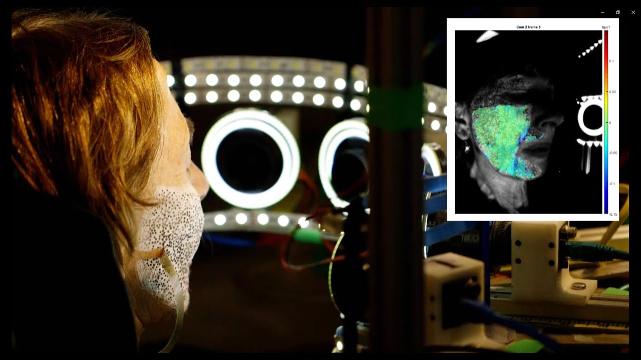 Các nhà nghiên cứu đã sử dụng một quy trình gọi là tương quan hình ảnh kỹ thuật số trên những tình nguyện viên khỏe mạnh để giúp họ chọn các vị trí phù hợp nhất trên mặt để đặt cảm biến. Họ vẽ các đốm đen trắng ngẫu nhiên trên khuôn mặt tình nguyện viên và sau đó chụp nhiều hình ảnh của khu vực đó bằng nhiều máy ảnh, trong khi đối tượng thực hiện các chuyển động trên khuôn mặt như mỉm cười, nhếch má hoặc nhếch miệng theo hình dạng của các chữ cái nhất định. Các hình ảnh được xử lý bằng phần mềm phân tích cách các chấm nhỏ di chuyển để xác định mức độ biến dạng cơ học trên một khu vực của khuôn mặt.