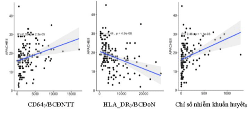 Ngoài ra, HLA-DR trên BCĐN tại thời điểm 48 giờ nhập hồi sức có khả năng tiên lượng tử vong ở nhóm nhiễm khuẩn huyết hoặc sốc nhiễm khuẩn (nếu giảm 1000 phân tử HLA-DR trên BCĐN sẽ làm tăng tỷ lệ tử vong thêm 20%).