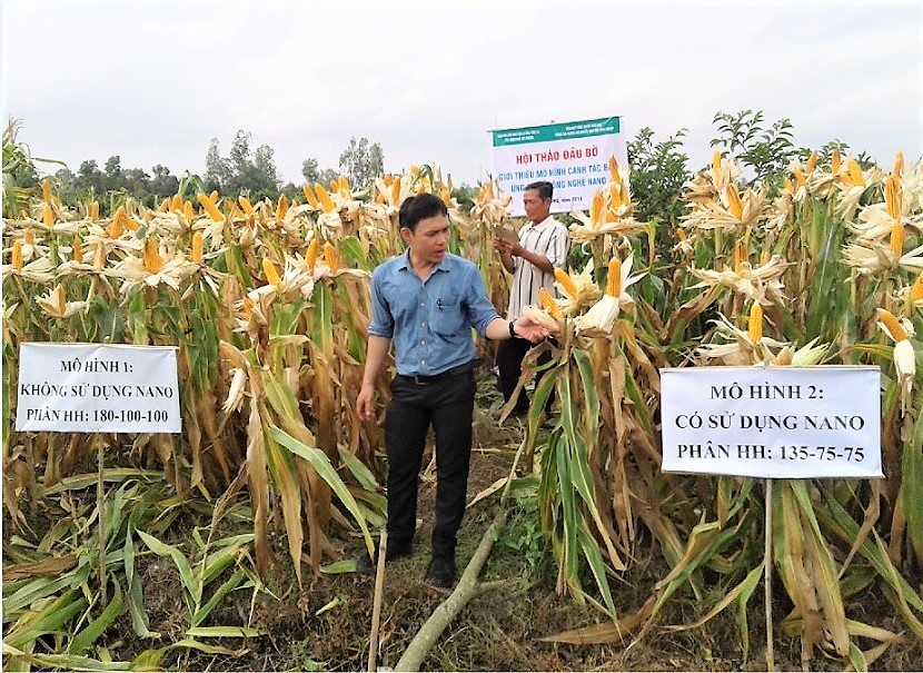 Một góc ruộng trình diễn, so sánh mô hình canh tác ngô theo quy trình sử dụng chế phẩm nano tại Hậu Giang. Ảnh: VAST