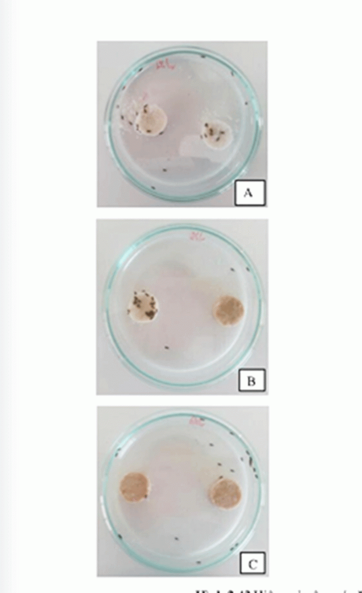 Thí nghiệm mọt gạo không ăn ở mẫu bánh tẩm chế phẩm. Ảnh: Nhóm nghiên cứu
