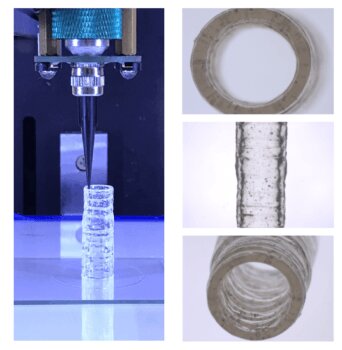 Đặt mục tiêu sửa đổi các phương pháp hiện tại để giảm thiểu khoảng cách này và cải thiện khả năng dịch chuyển của các kỹ thuật này bằng cách hướng quá trình in sinh học 3D vào y học mạch máu, nhóm các nhà khoa học Khoa Kỹ thuật Y sinh, Đại học Texas A&M do phó giáo sư Akhilesh Gaharwar, và trợ lý giáo sư Abhishek Jain dẫn dắt, đã thiết kế một mô hình 3D được in sinh học của một mạch máu mô phỏng chức năng mạch máu và phản ứng bệnh tật.