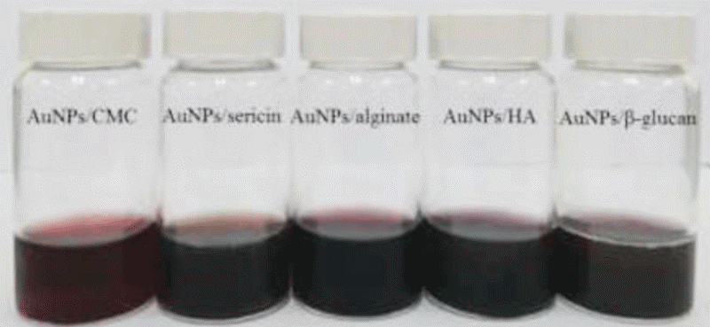 Nano vàng được tạo ra bằng phương pháp nào đều có khuynh hướng bị kết tụ trong nước thành những hạt có kích thước lớn. Để hạn chế điều đó, chất ổn định được bổ sung trước khi chế tạo nano vàng. Các polymer tự nhiên như bê ta (ß) – glucan, CM-chitosan, alginate, sericin, HA, algina,… có tính an toàn, tương hợp sinh học cao, thích hợp làm chất đổn định để ứng dụng nano vàng trong các lĩnh vực sinh – y học, mỹ phẩm,…