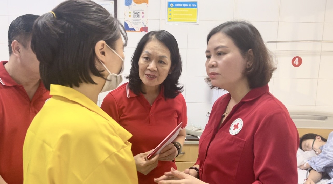 Tại Bệnh viện Giao thông Vận tải, Chủ tịch Hội Chữ thập đỏ Việt Nam Bùi Thị Hoà đã trực tiếp tới từng giường bệnh, ân cần thăm hỏi, động viên và trao quà hỗ trợ đến tận tay các bệnh nhân.