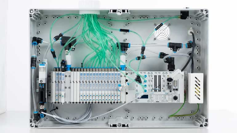 Van đầu cuối loại MPA của Festo điều khiển xi lanh khí nén của robot y tế.