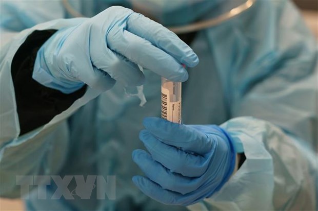 Nhân viên y tế lấy mẫu xét nghiệm COVID-19. (Ảnh: AFP/TTXVN)