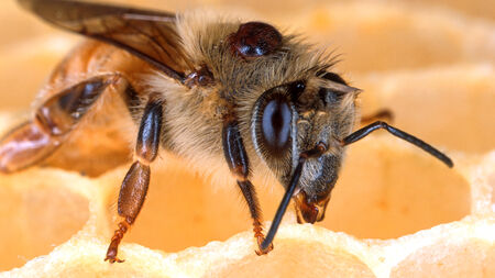 Một loại nấm mới có thể giúp chống lại ký sinh varroa đang nằm trên đầu của con ong mật này.
