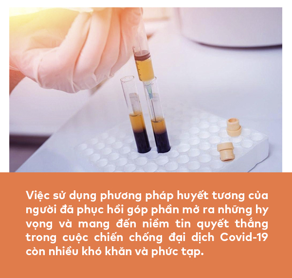 Cho đến thời điểm hiện tại, thế giới vẫn đang loay hoay thử nghiệm nhiều loại thuốc khác nhau, song cũng không có hiệu quả. Việc điều trị vẫn phải dựa trên những triệu chứng điển hình để có phác đồ điều trị phù hợp với từng thể trạng sức khỏe của người bệnh. Vì vậy, việc sử dụng phương pháp huyết tương của người đã phục hồi được nhiều chuyên gia y tế đánh giá cao, góp phần mở ra những hy vọng và mang đến niềm tin quyết thắng trong cuộc chiến chống đại dịch Covid-19 còn nhiều khó khăn và phức tạp.