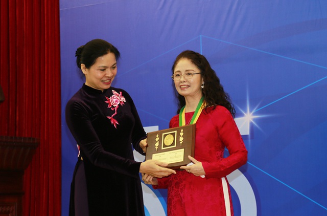 PGS. TS. Trương Thanh Hương (bên phải ảnh) nhận Giải thưởng Kovalevskaia năm 2020 do Chủ tịch Hội LHPN Việt Nam Hà Thị Nga trao.