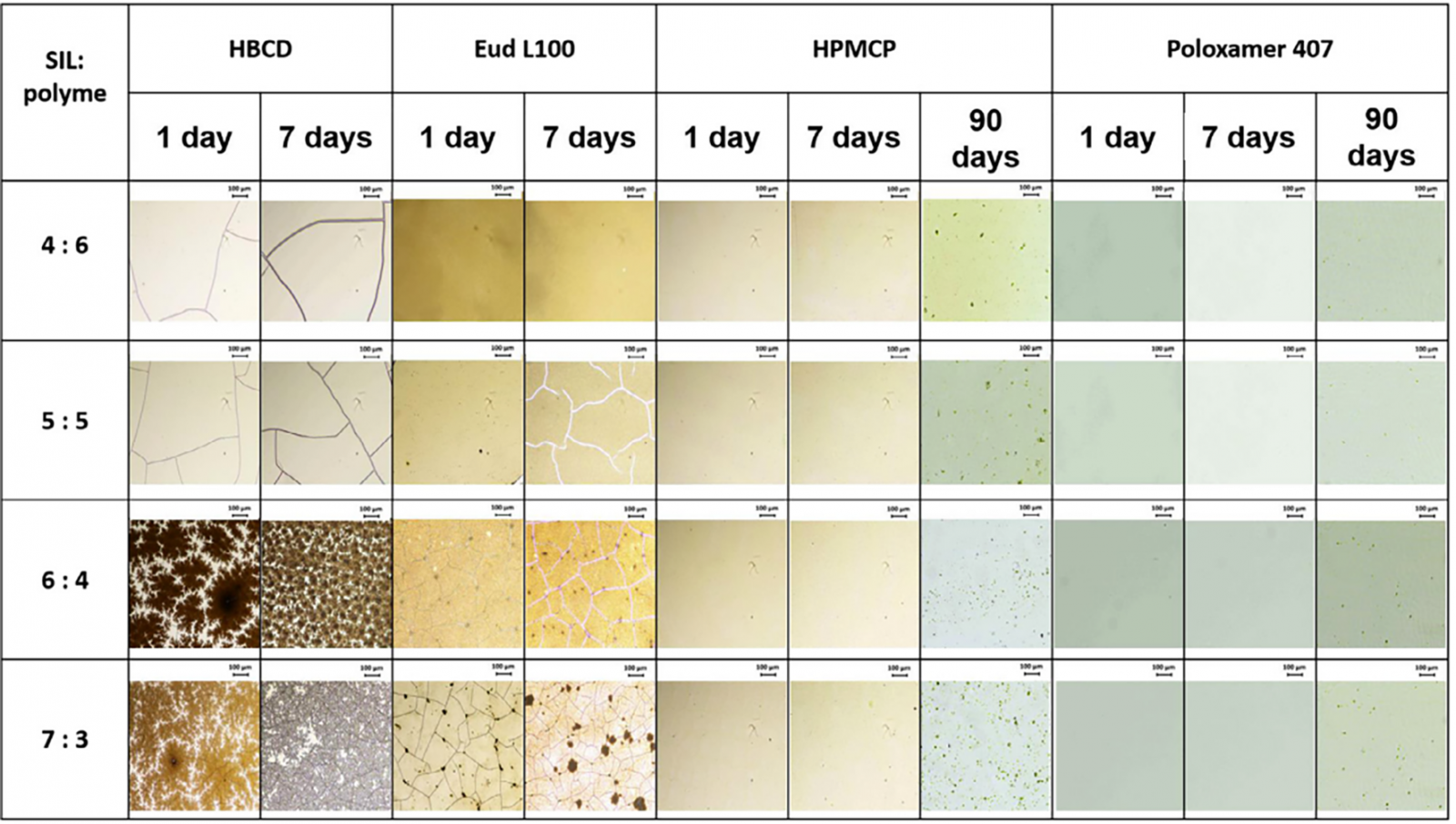 Hình ảnh silymarin và các polymer khác trong các chu kỳ lưu trữ khác nhau.