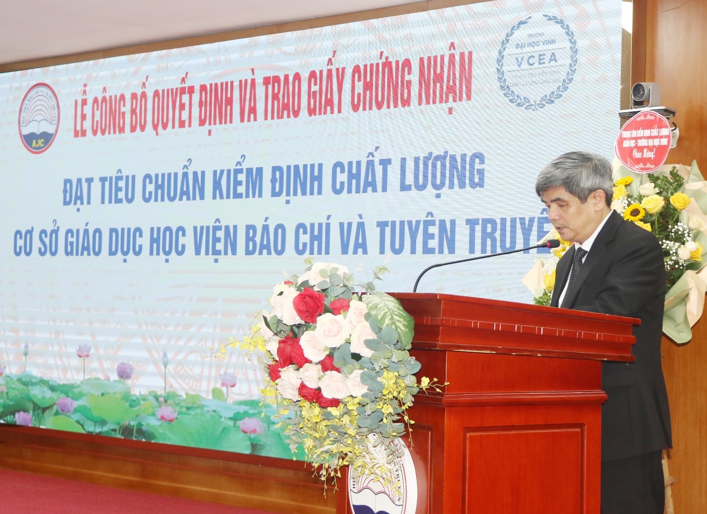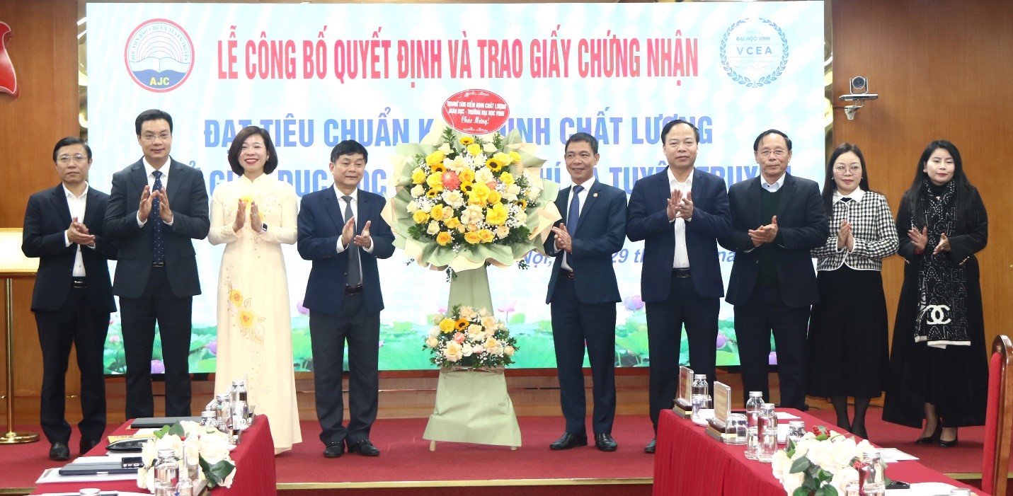 Trung tâm Kiểm định chất lượng giáo dục - Trường Đại học Vinh tặng hoa chúc mừng Học viện Báo chí Tuyên truyền