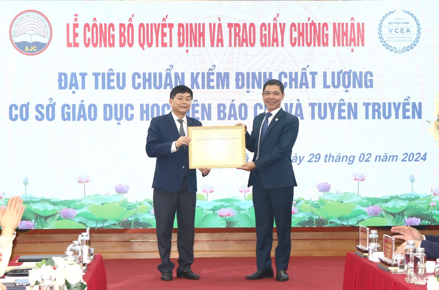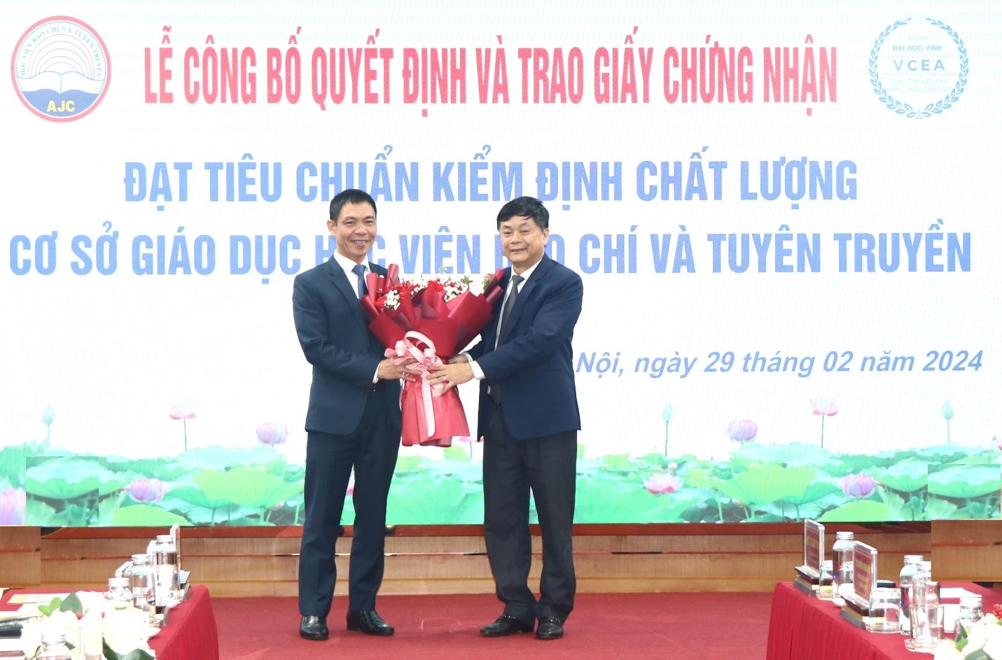 Chiều 29/02/2024, Học viện Báo chí và Tuyên truyền tổ chức Lễ công bố quyết định và trao giấy chứng nhận đạt tiêu chuẩn kiểm định chất lượng cơ sở giáo dục.