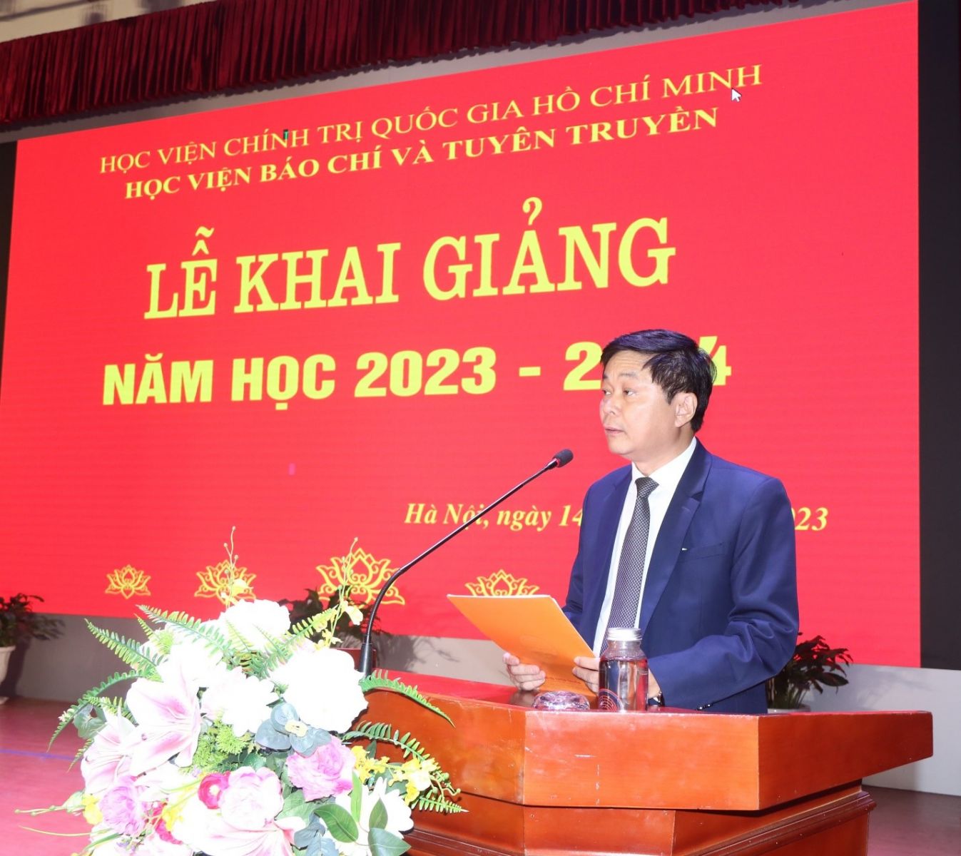 PGS,TS. Phạm Minh Sơn, Phó Bí thư Đảng ủy, Giám đốc Học viện phát biểu khai giảng năm học 2023-2024 của Học viện Báo chí và Tuyên truyền