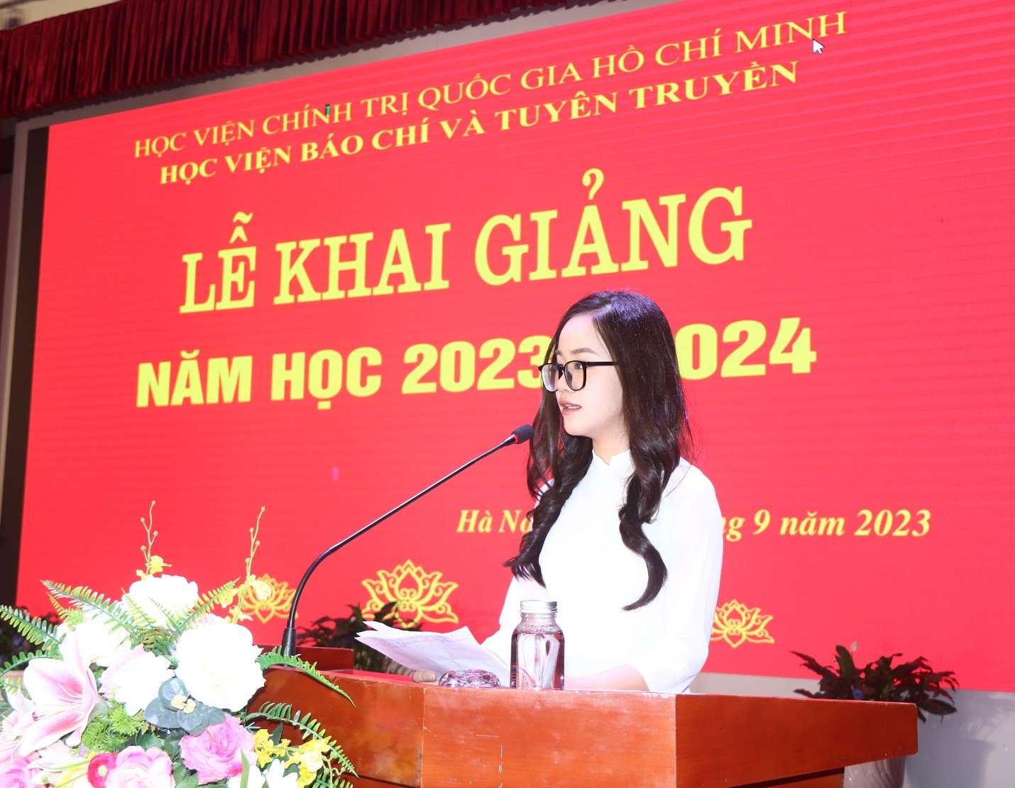 Đại diện cho gần 2.000 tân sinh viên Việt Nam và Lào K43, Sinh viên thủ khoa Khóa 43, Lương Nhật Linh lớp Truyền thông Đa Phương tiện K43 đã có bài phát biểu tại buổi Lễ và tặng bó hoa tươi thắm đến lãnh đạo Học viện Chính trị quốc gia Hồ Chí Minh và Ban lãnh đạo Học viện Báo chí và Tuyên truyền cùng các thầy, cô giáo, cán bộ nhà trường.