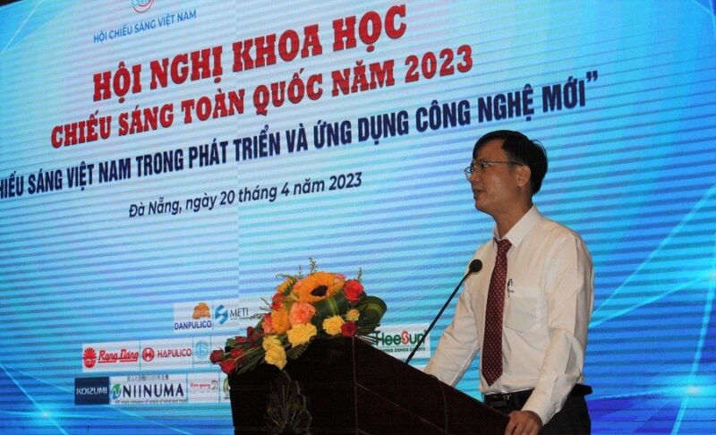 Ông Lê Văn Tuấn, Phó giám đốc Sở Xây dựng Đà Nẵng phát biểu tại hội nghị khoa học chiếu sáng toàn quốc năm 2023.