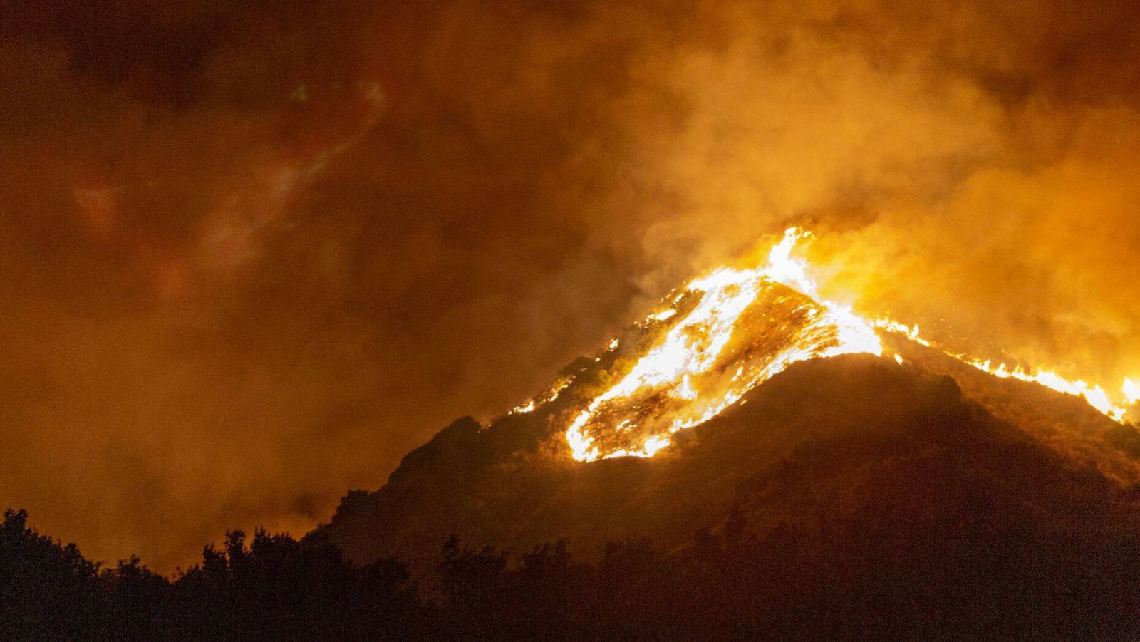 Những đám cháy lớn trên một sườn đồi gần Somis, bang California, Mỹ đầu tháng 11 - Ảnh chụp màn hình Getty