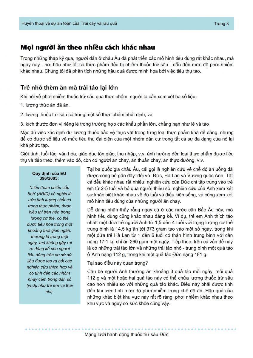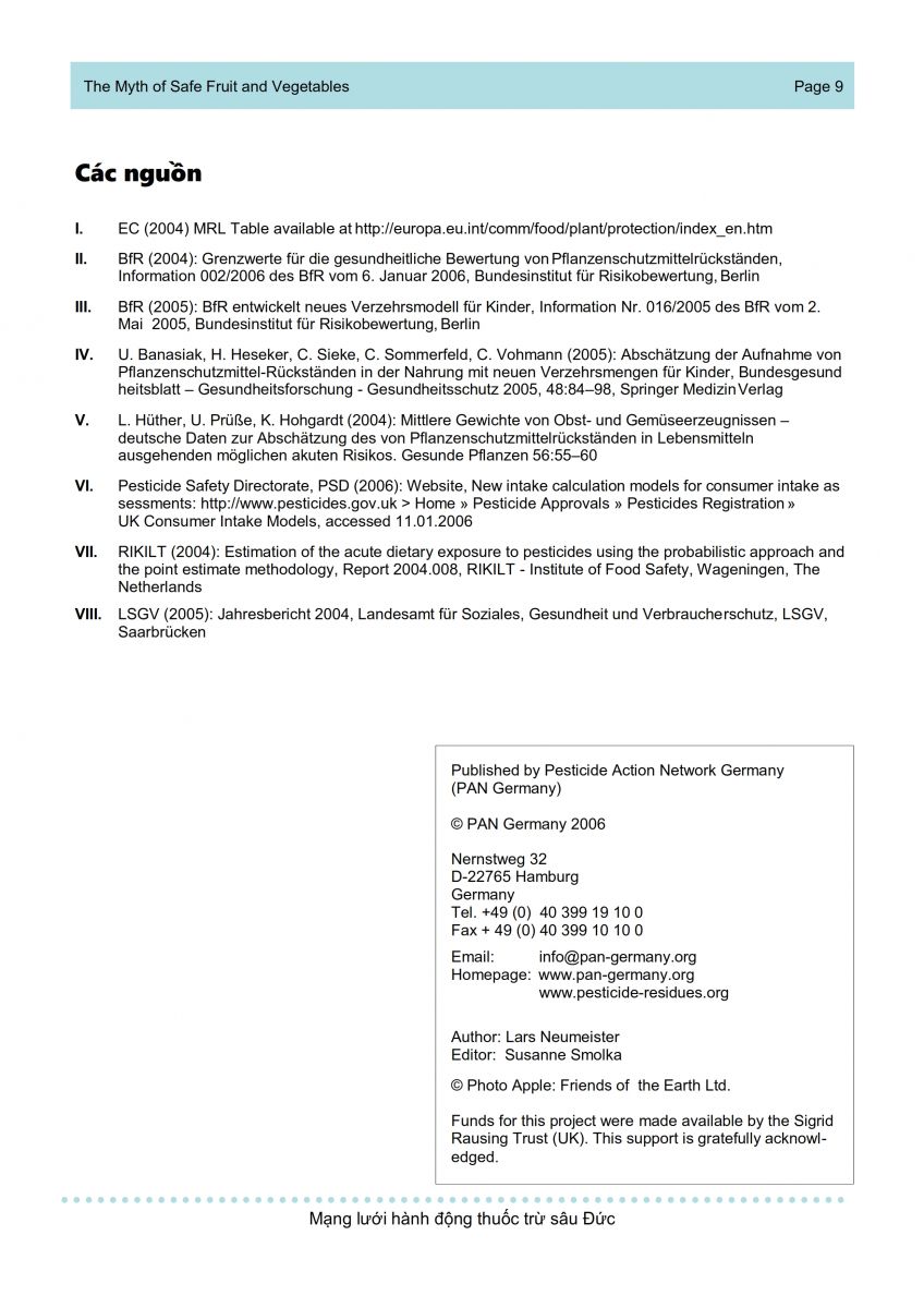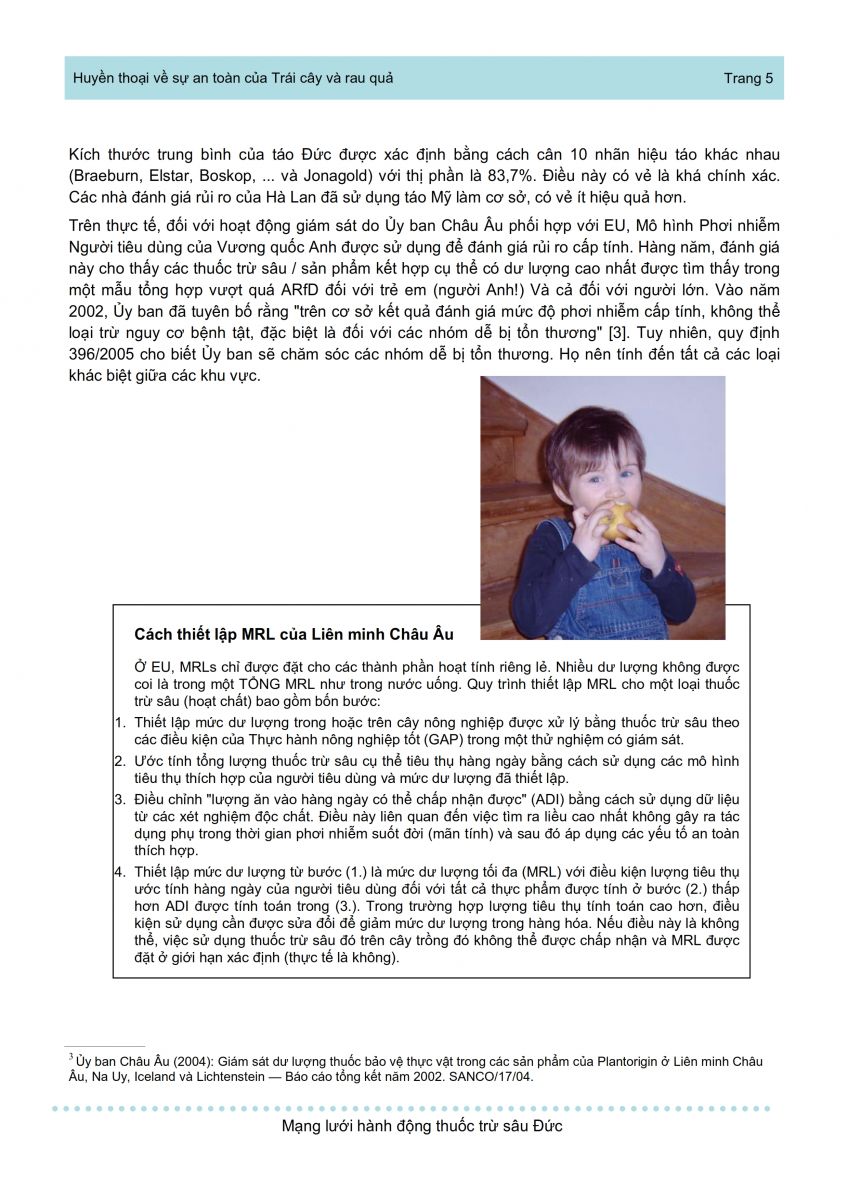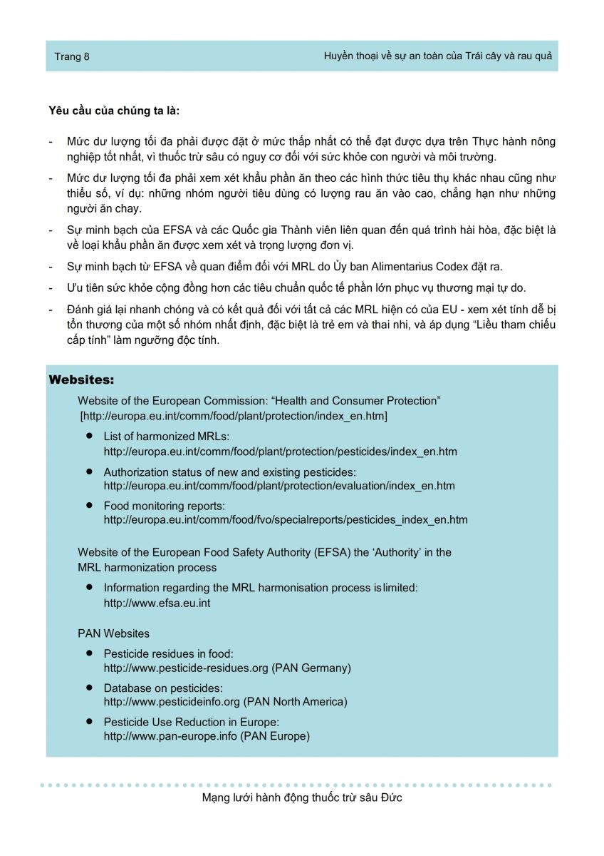 TNNN - Báo cáo tóm tắt này có mục đích nâng cao nhận thức trong xã hội dân sự về thực tế rằng quá trình hiện tại của EU về việc hài hòa hóa mức độ thuốc trừ sâu trong thực phẩm cho thấy một cơ hội để giảm rủi ro hóa chất. Tuy nhiên, nếu xã hội dân sự không tham gia vào việc này với tư cách là cơ quan giám sát tích cực, chúng ta có thể sớm phải đối mặt với mức thuốc trừ sâu chỉ phục vụ thương mại tự do và lợi ích của các ngành công nghiệp - bỏ qua các nhóm dễ bị tổn thương.