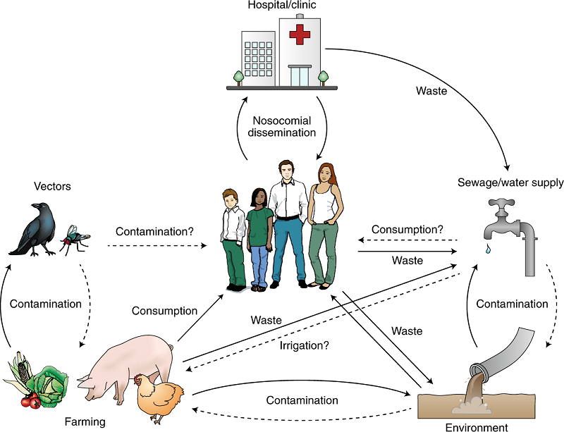 Vào năm 2015, một cuộc khảo sát về tình trạng kháng kháng sinh của học sinh Trung Quốc cho thấy một con số gây sốc khi 58,3% trong số 1064 mẫu nước tiểu được xét nghiệm dương tính với kháng sinh, môi trường và thực phẩm bị ô nhiễm có thể là nguồn phơi nhiễm chính cho các em.