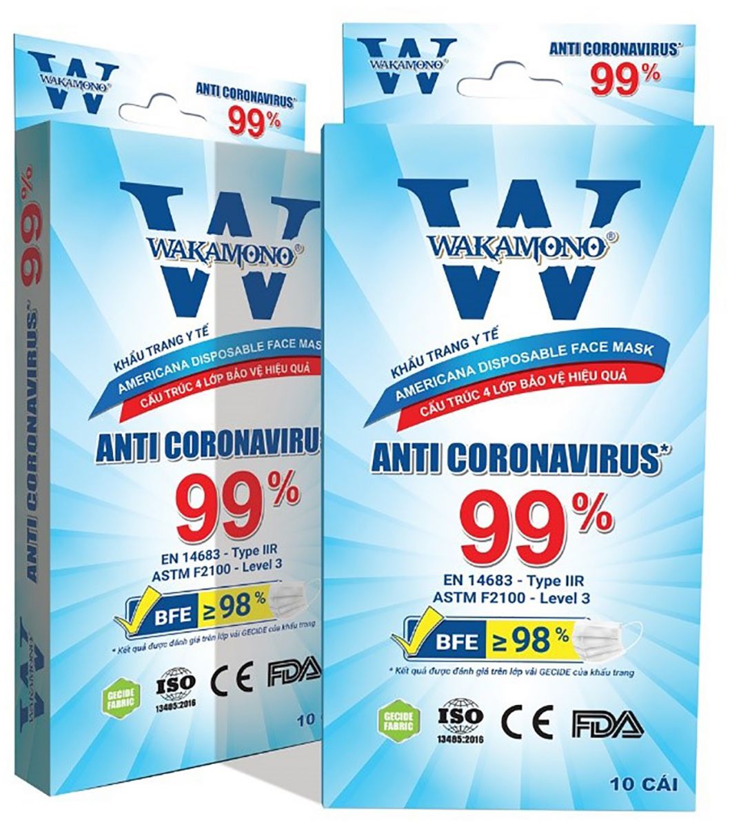 Đến nay đã có hơn 10 triệu chiếc khẩu trang diệt virus Corona 99% được xuất khẩu vào các thị trường khó tính từ châu Âu, đến Úc, Canada và Mỹ... Theo kết quả trong phòng kiểm nghiệm Đức, Mỹ, Ấn Độ, khẩu trang Wakamono của Việt Nam bốn lớp bảo vệ, có khả năng diệt 99% một số virus, trong đó có nCoV.
