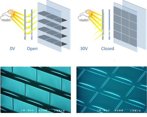 Cấu trúc và hoạt động của kính phản quang thông minh MOEMS.