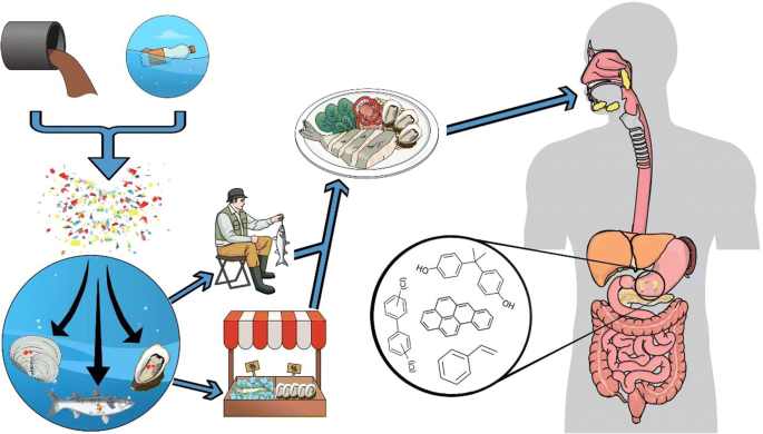 Đường đi của các hạt vi nhựa vào cơ thể người. Ảnh: Springer.