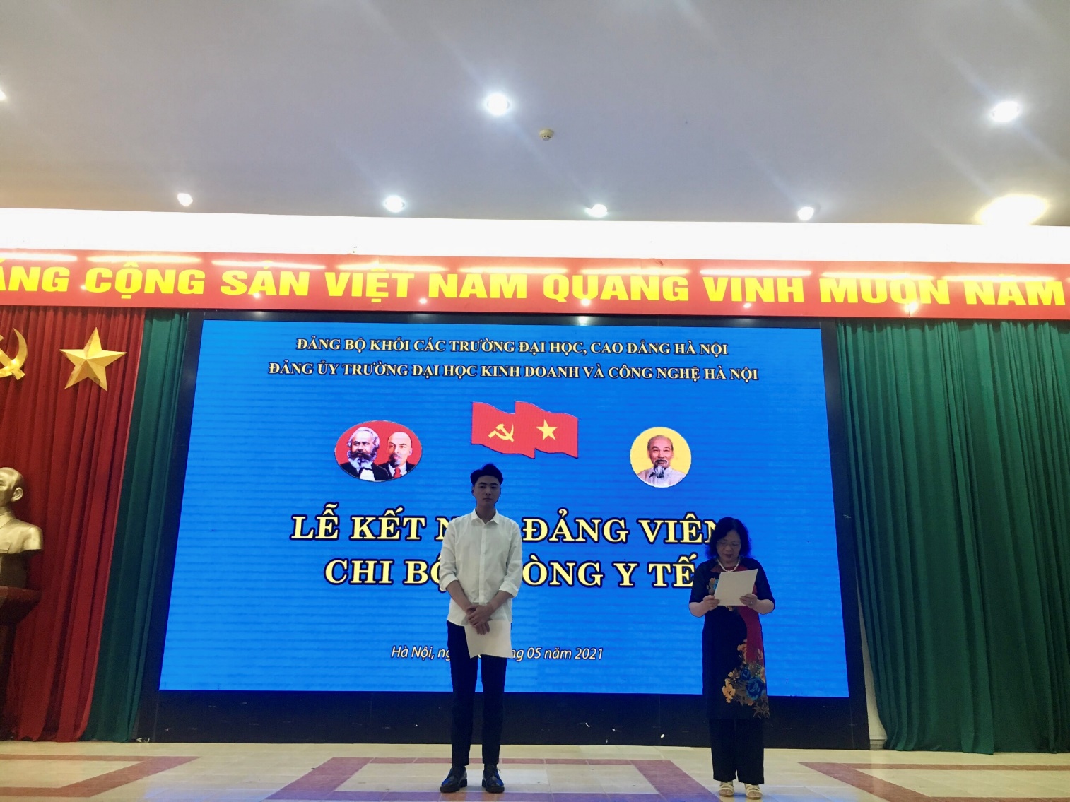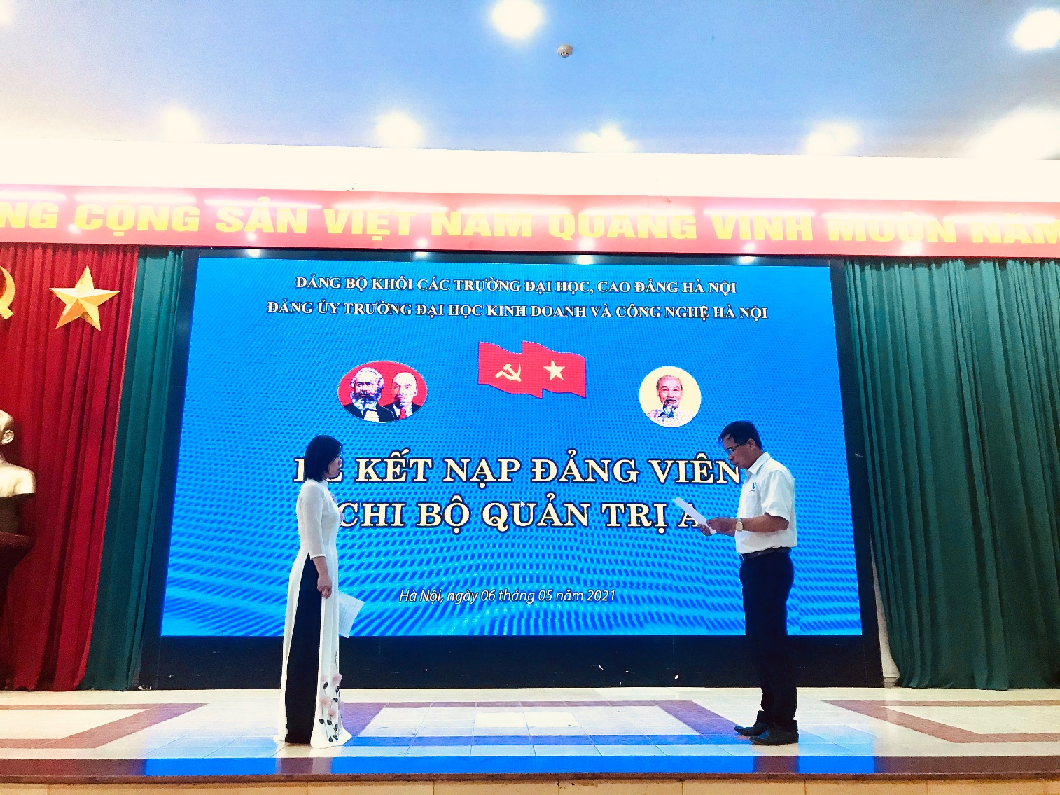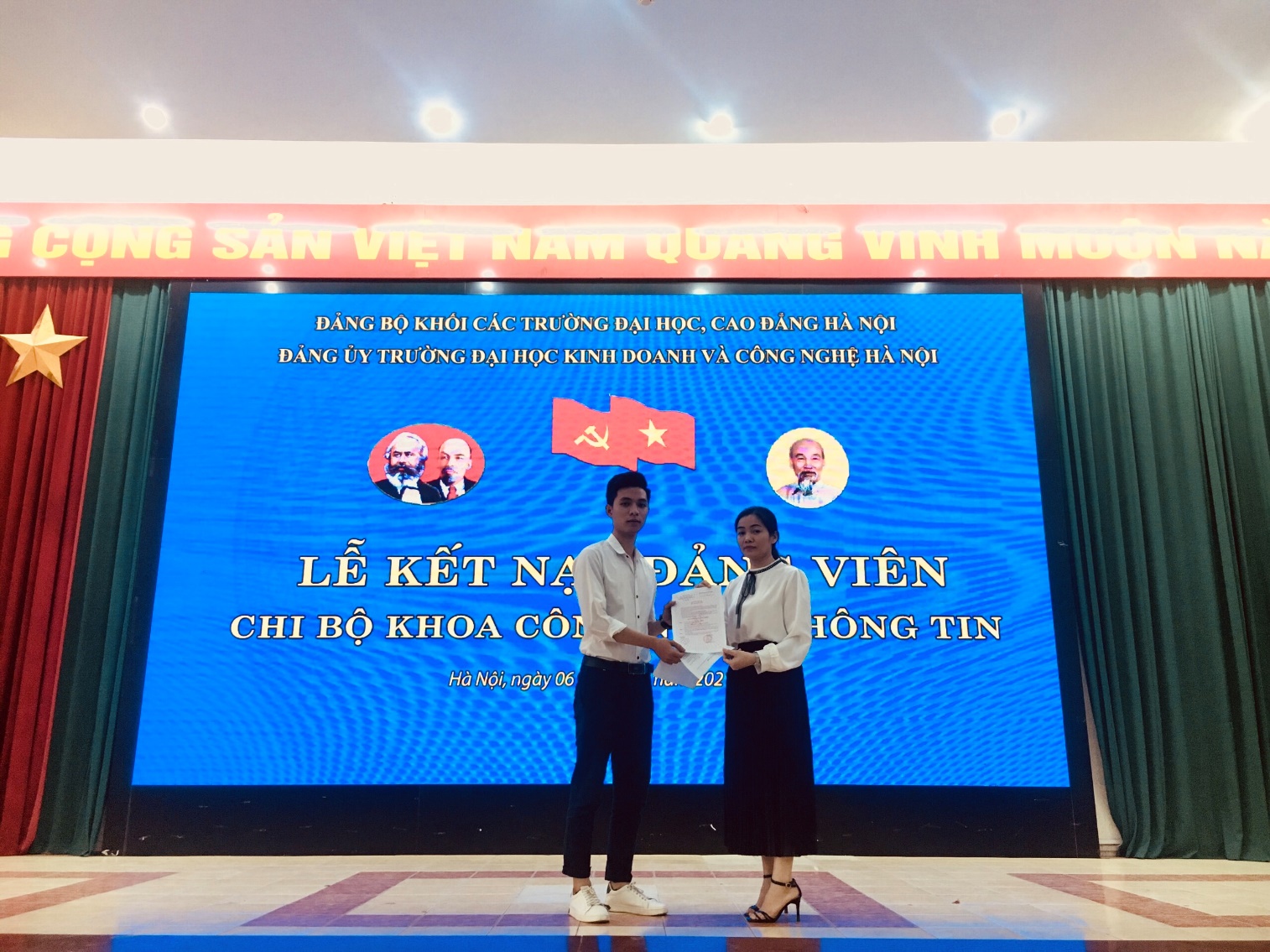 Lễ kết nạp Đảng viên của các Chi bộ phòng quản trị A, Phòng y tế và khoa Công nghệ thông tin trường Đại học Kinh doanh và Công nghệ Hà Nội