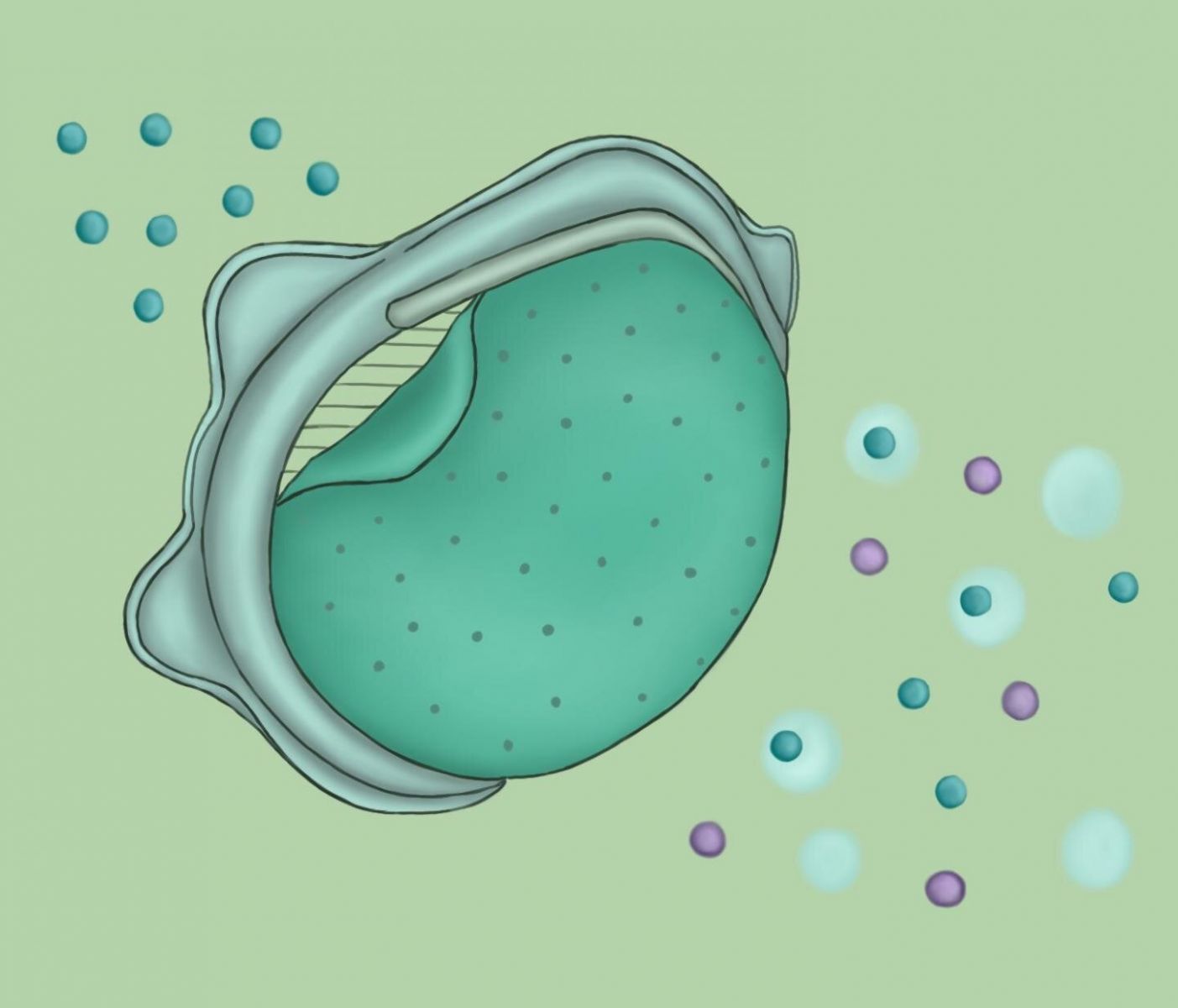 Màng lọc nano mới có thể được sử dụng thay cho màng lọc của khẩu trang N95 với hiệu quả vượt trội, chỉ cho phép không khí sạch (vòng tròn màu xanh) đi qua và lọc hiệu quả các hạt có kích thước tương tự virus SARS-CoV-2 (vòng tròn màu tím). Nguồn: ACS Nano 2020, DOI: 10.1021/acsnano.0c03976.