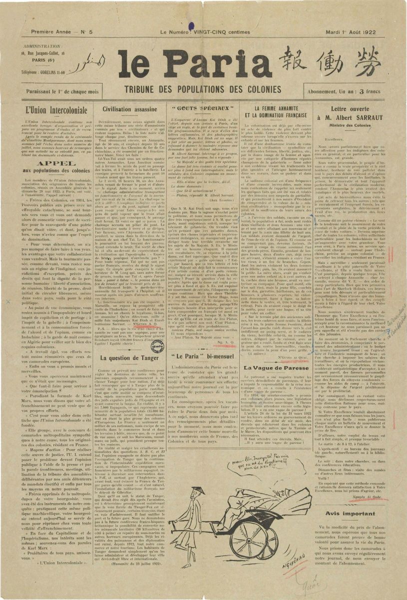 Tại Paris - thủ đô nước Pháp, Hội Liên hiệp thuộc địa xuất bản báo Le Paria là lấy tờ báo làm cơ quan ngôn luận, là diễn đàn của nhân dân các thuộc địa.
