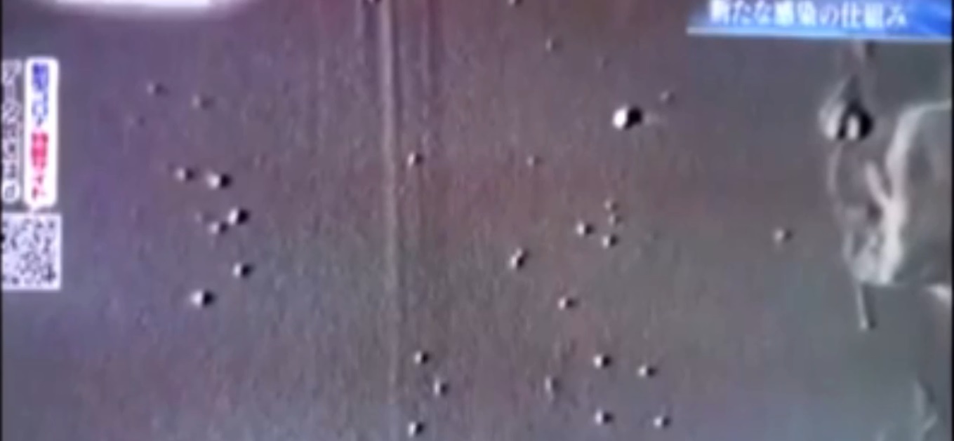 Trong clip, những thứ mà mắt thường chúng ta nhìn thấy là những giọt nước lớn với đường kính cỡ 1mm. Nó ngay lập tức rơi xuống mặt đất. Tuy nhiên khi quan sát bằng camera có độ nhạy lớn thì lúc này có thể thấy những hạt lấp lánh xuất hiện.