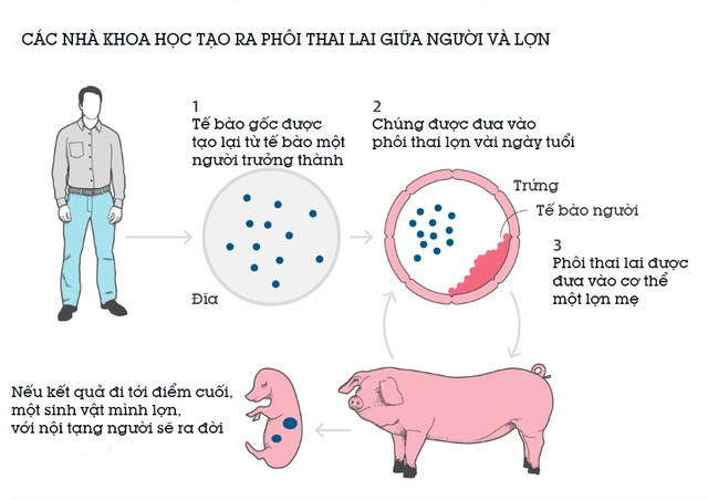 Nội tạng chứa tế bào gốc của chính người bệnh có thể được nuôi lớn bên trong cơ thể những con vật, sau đó cấy trở lại cho người bệnh mà không hề bị đào thải.