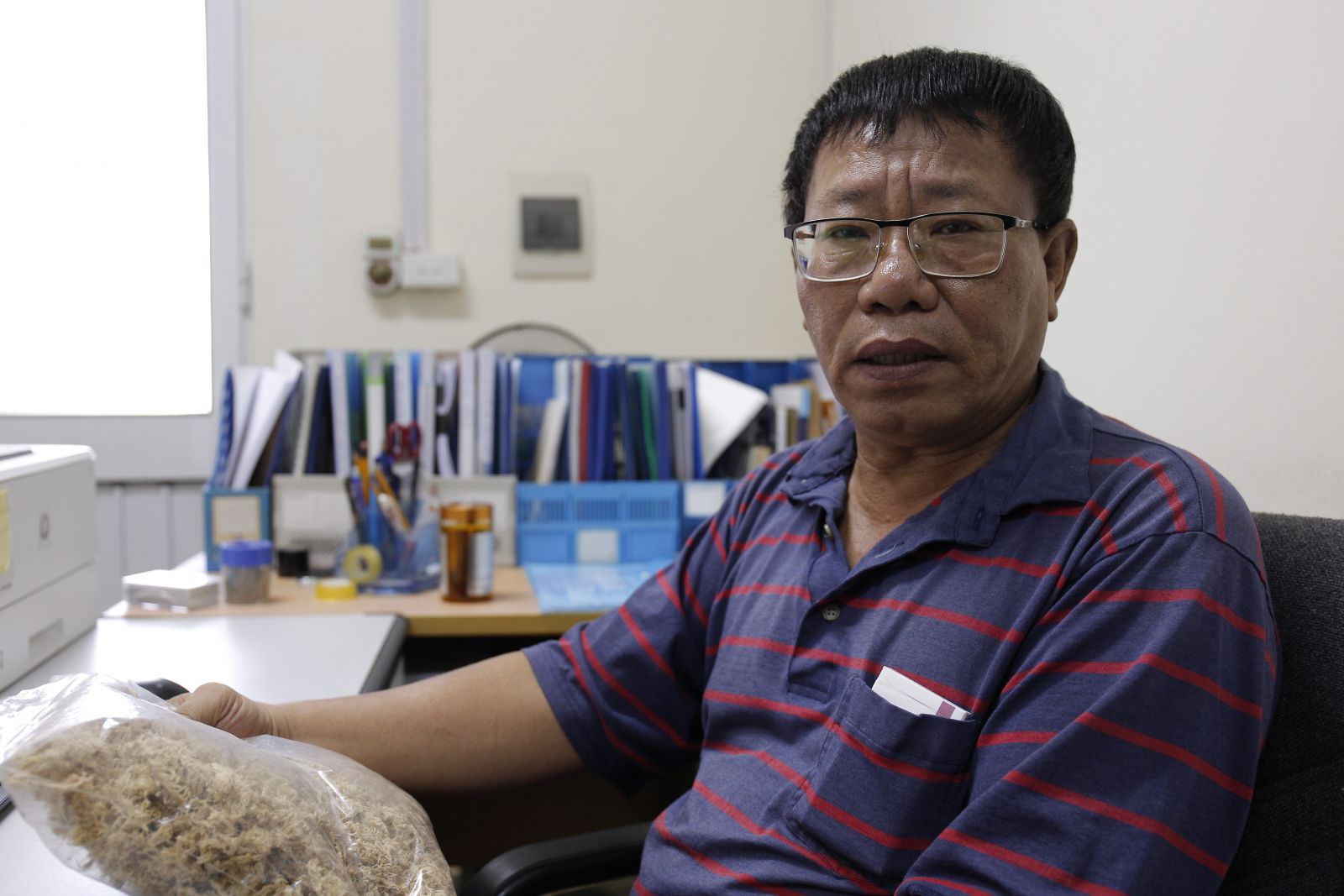 Giáo sư Lê Hồng Khiêm giới thiệu loại rêu lấy từ xã Tả Củ Tỷ (Lào Cai) để làm moss bag.