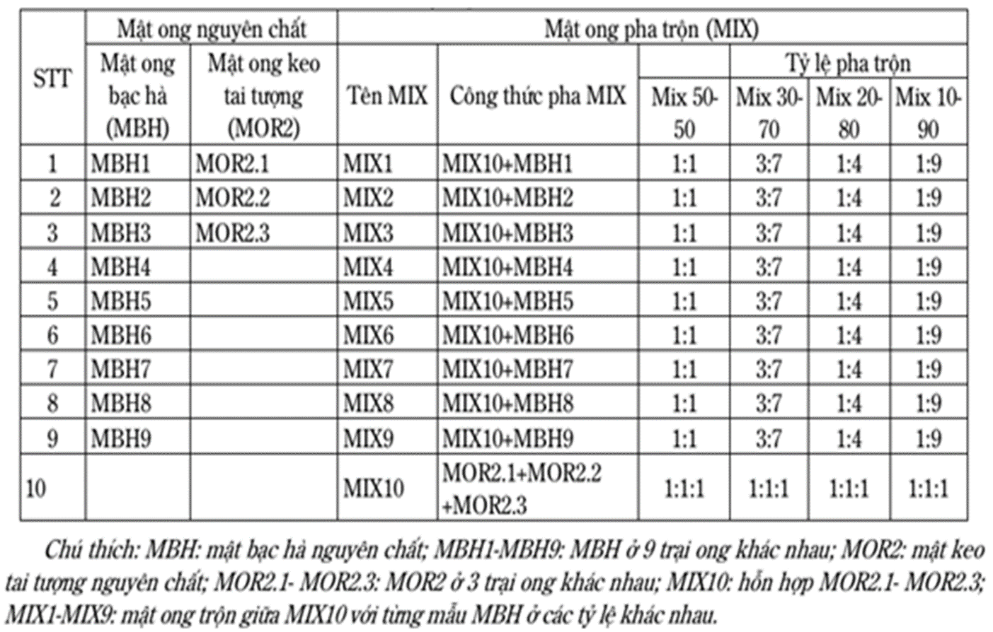Để lựa chọn chỉ thị phân biệt MBH nguyên chất và một số loại mật khác, nhóm tác giả đã lựa chọn