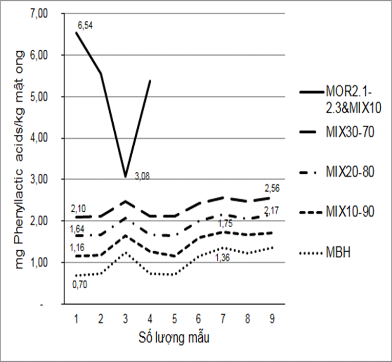 Lựa chọn từ các chất chống ô xy hóa cho thấy, trong MBH, hàm lượng của chất phenyllactic axit (3-PA) từ 0,12-1,76 mg/kg MBH, khác biệt tin cậy về thống kê (0,01