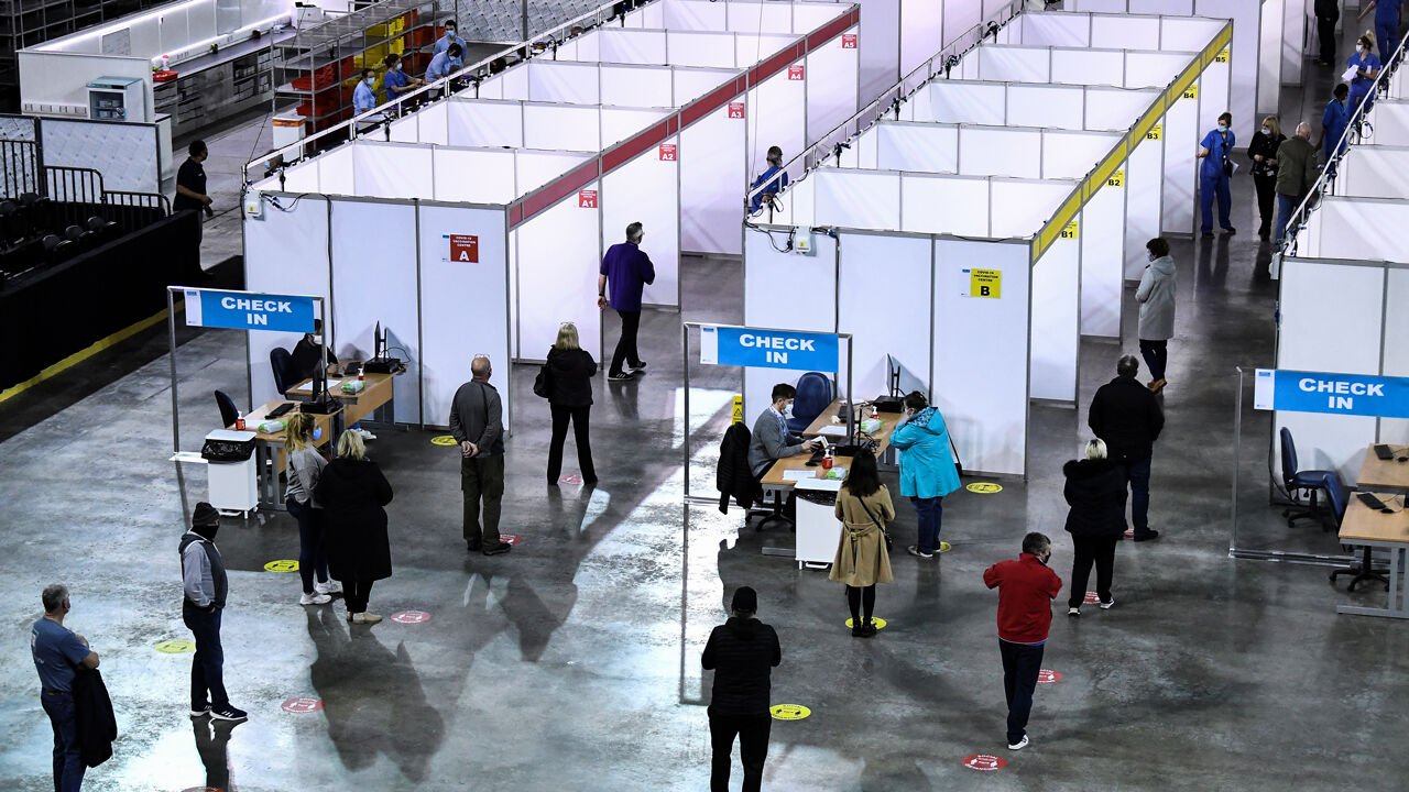Mọi người xếp hàng để nhận vaccine Covid-19 của AstraZeneca ở Belfast, Bắc Ireland. Vương quốc Anh đã sử dụng vaccine này nhiều hơn bất kỳ quốc gia châu Âu nào.