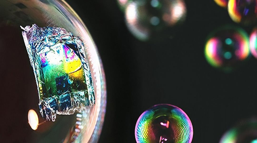 Pin mặt trời siêu mỏng nhúng trong bong bóng xà phòng.