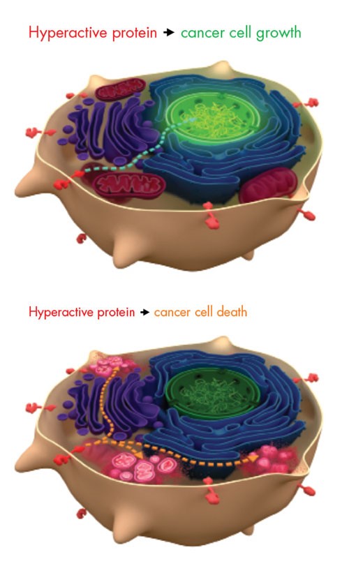 Hình dưới: Protein hoạt động mạnh -Tế bào ung thư chết