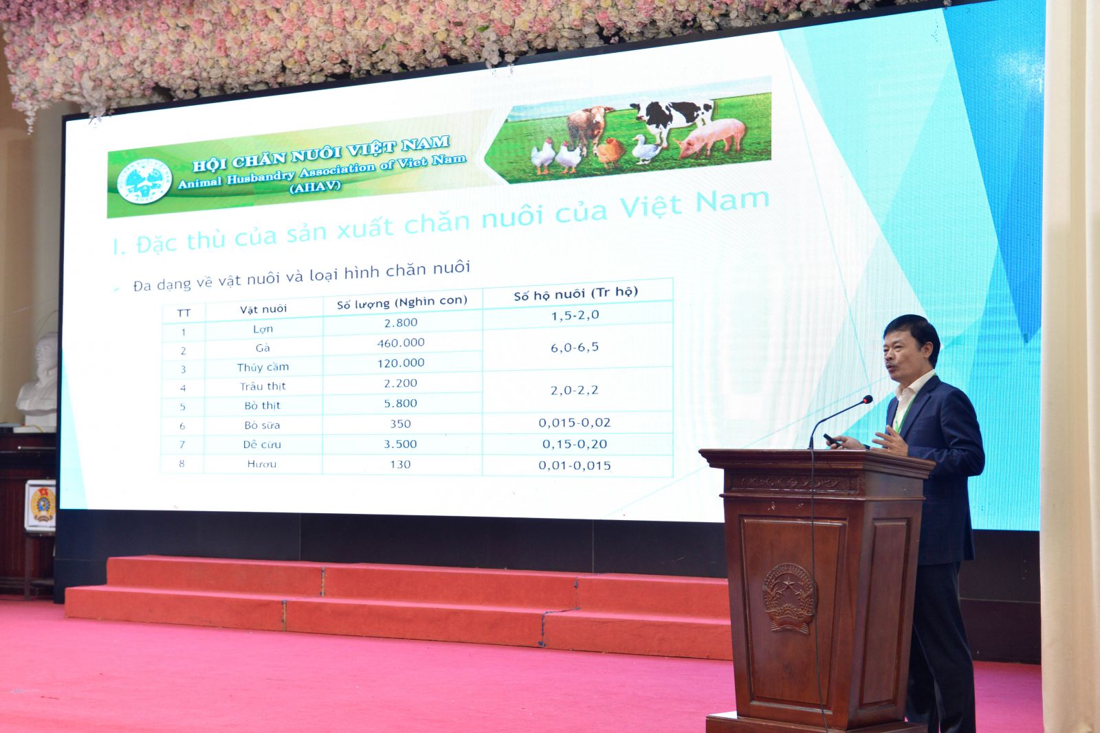 TS. Nguyễn Xuân Dương, Chủ tịch Hội chăn nuôi Việt Nam, trình bày tham luận tại hội thảo.
